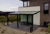 Střecha hliníkové pergoly může být z komůrkového čirého či mléčného polykarbonátu o síle 16 mm nebo bezpečnostního lepeného skla. Polykarbonát je cenově dostupnější. Bezpečnostní sklo je stále populárnější. Hliníková pergola se sklem se doplňuje stíněním pomocí markýz, baldachýnů nebo plisé žaluzií.