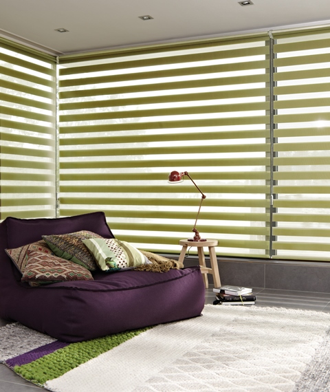 Na jednom kuse látky se střídají zatemňovací a transparentní pruhy. Jejich vzájemným překrýváním můžete velmi efektivně regulovat průnik světla podobně jako je tomu třeba žaluzií. Šířka jednotlivých pruhů se odvíjí od výběru látky. Pokud nainstalujete více zatemňovacích rolet vedle sebe, můžete docílit dokonalého vzhledu celé sestavy pomocí jedinečného sladění pruhů.